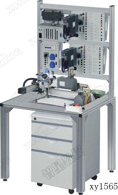 智星教仪AZ-444 双轴运动控制教学装置需有底板、伺服电机及伺服放大器、高精度丝杆传动机构、托板、限位传感器组件、铝合金导轨式支架及 PLC 控制系统,实验台等。在由三轴坐标构成的机器人系统中,对每个轴,PLC 都可以给出脉冲信号,进而驱动伺服放大器,产生伺服电机的驱动指令。该指令可控制伺服电机以合适的速度运动之合适的位置,速度与位置均可控。每个轴的两端都需采用两个行程开关来实现限位保护开关的功能。装置需有立轴,完成升降功能,即可实现整套系统 3 个自由度高精度受控运动的功能。装置需由限位开关,对整个系统进行保护。