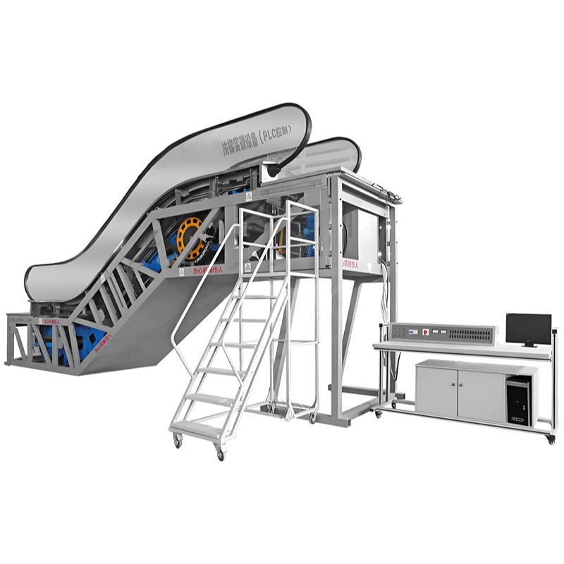 AZ-814扶梯电梯作业人员实训考核装置适合于各类职业院校和技工学校的电梯安装与维保、楼宇自动化、机电自动化等电梯相关专业以及职业资格鉴定中心和培训考核机构。整个电梯安装维修与保养实训考核装置采用真实的部件组成,扶梯主机、梯级链、驱动链、扶手带、变频器等都采用真实的部件或配套的机构。同时配套有相应的故障点设置,学生可以通过故障现象在装置上检测查找故障点的位置,并将其修复。学生也可以根据电梯定期检查的要求对电梯的相应部位进行检测和修护。通过在该实训装置上的实训,使学生能够真正学习和掌握电梯的维保技术及技能。特别设计的井架,为老师在实训中对学生的教学和指导提供了非常方便的平台。